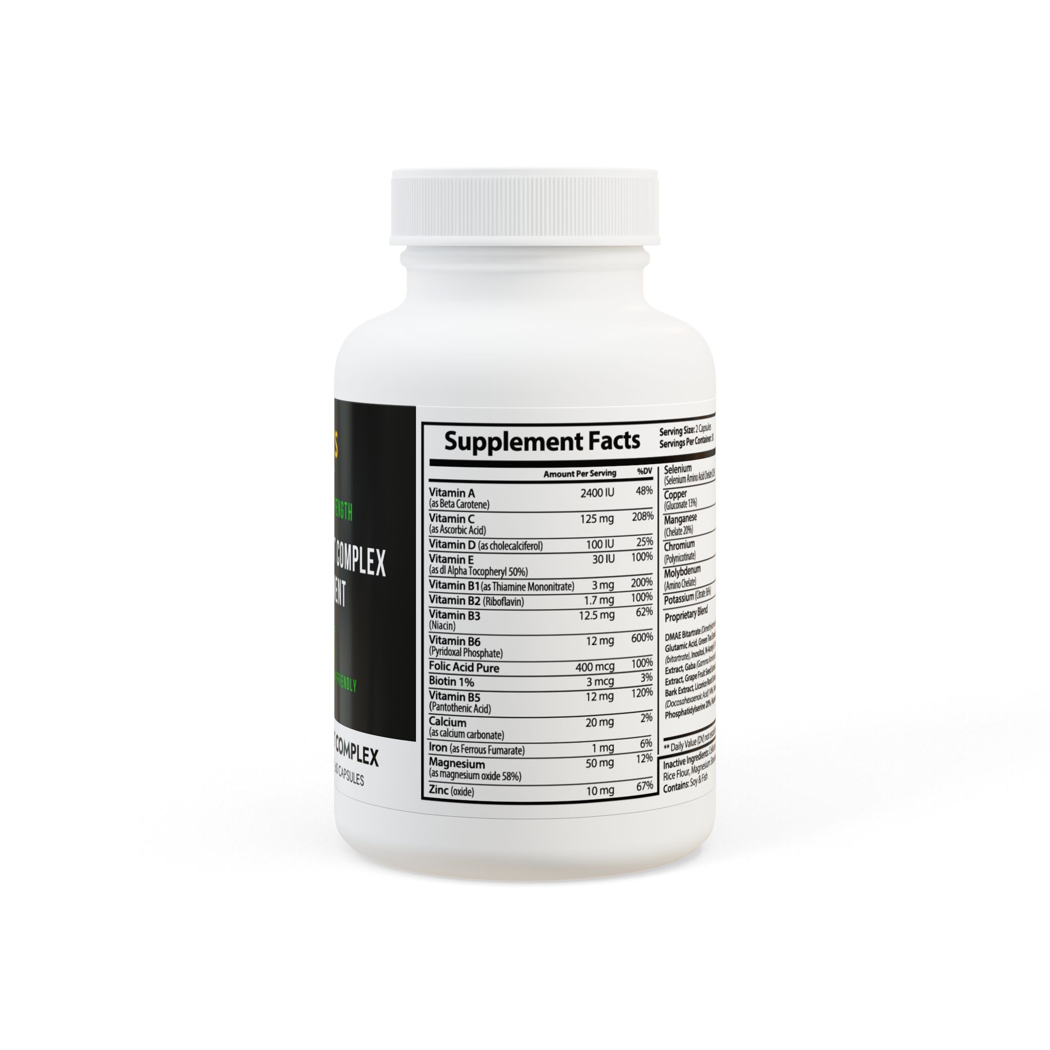 Ingredients: Vitamin A (as Beta Carotene), Vitamin C (as Ascorbic Acid), Vitamin D (as cholecalciferol), Vitamin E (as dl Alpha Tocopheryl 50%), Vitamin B1(as Thiamine Mononitrate), Vitamin B2 (Riboavin), Vitamin B3 (Niacin), Vitamin B6 (Pyridoxal Phosphate), Folic Acid Pure, Biotin, Vitamin B5 (Pantothenic Acid), Calcium (as calcium carbonate), Iron (as Ferrous Fumarate), Magnesium (as magnesium oxide 58%), Zinc (oxide), Selenium (Selenium Amino Acid Chelate 0.2%), Copper (Gluconate 13%), Manganese (Chelate 20%), Chromium (Polynicotinate), Molybdenum (Amino Chelate), Potassium (Citrate 36%), DMAE Bitartrate (Dimethylaminoethanol), L Glutamine, Glutamic Acid, Green Tea Extract, Bacopa Extract, Choline (bitartrate), Inositol, N-Acetyl L-Tyrosine, Bilberry Fruit Extract, Gaba (Gamma Aminobutyric Acid), Grape Seed Extract, Grape Fruit Seed Extract, Olive Leaf, Cinnamon Bark Extract, Licorice Root Extract, Boron (Citrate), DHA (Docosahexaenoic Acid) 14%, Vanadyl Sulfate 19%, Phosphatidylserine 20%, Huperzine A. Inactive Ingredients: Cellulose (Vegetable Capsule), Rice Flour, Magnesium Stearate, Silicon Dioxide. Contains: Soy & Fish